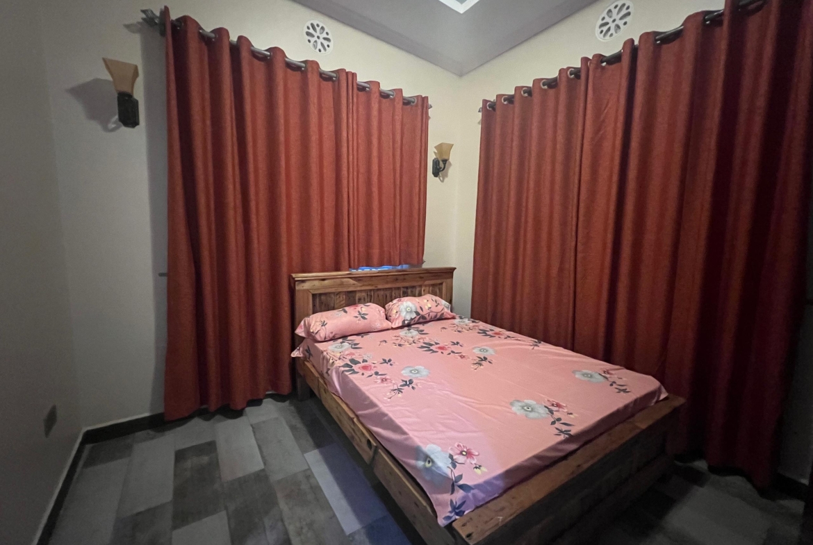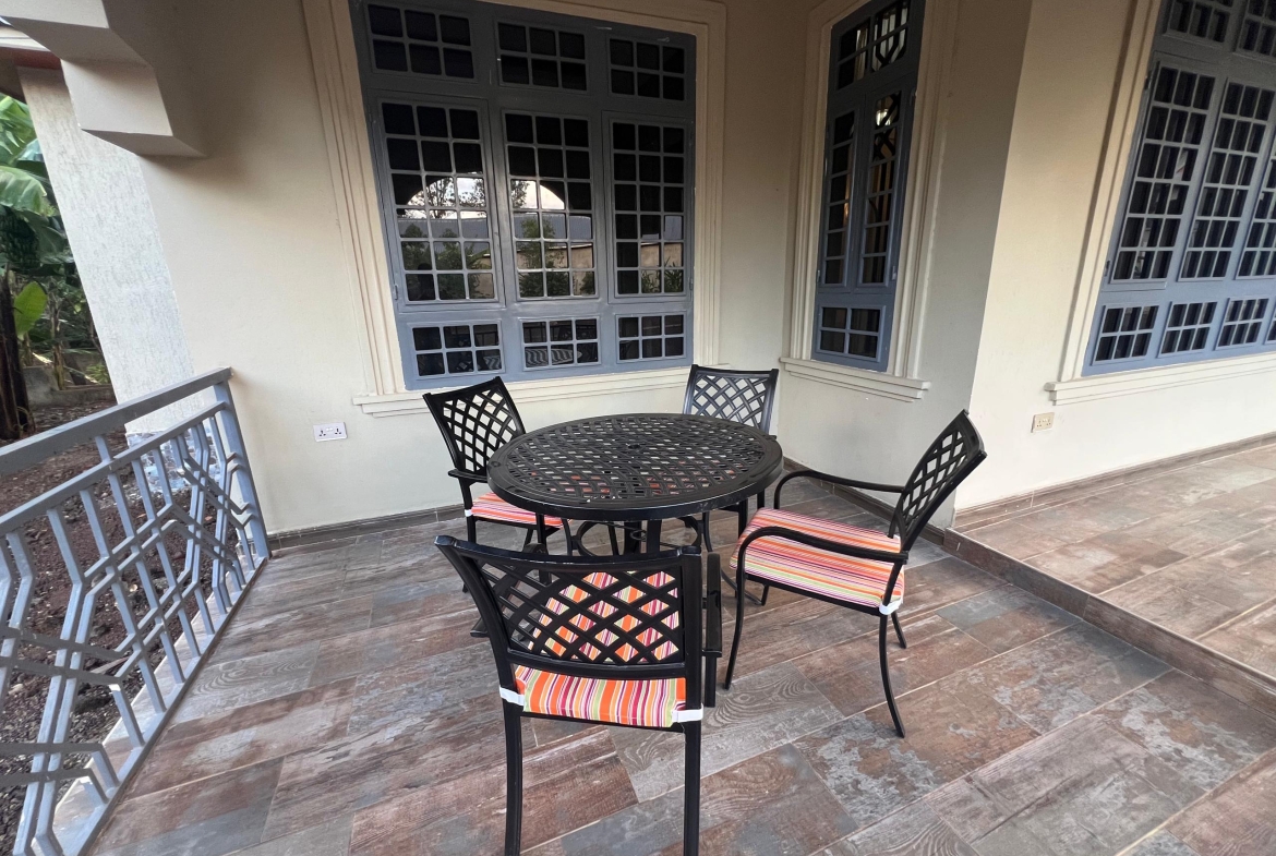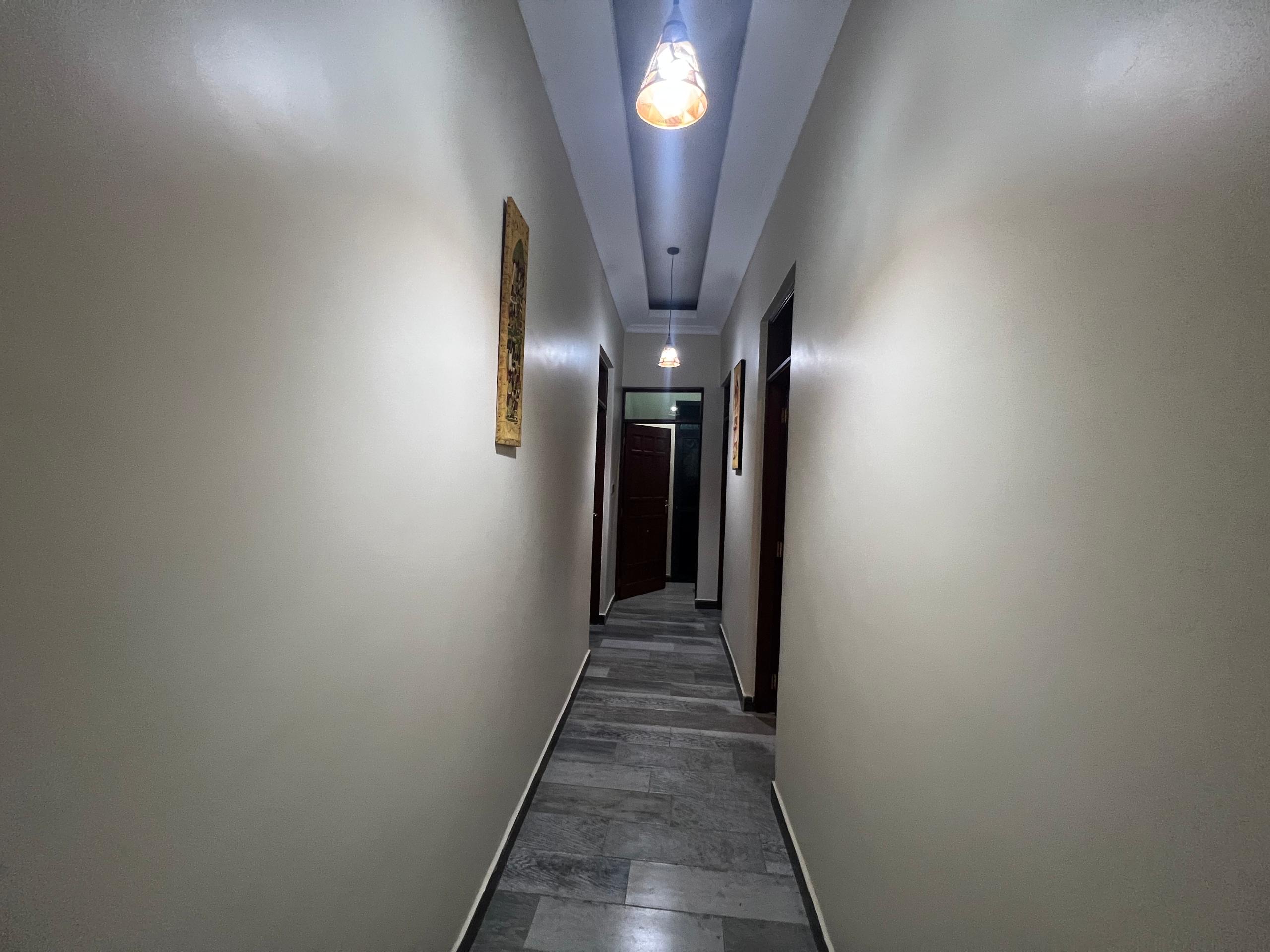 This spacious home offers four bedrooms, including two en-suite rooms with private bathrooms. Each bedroom features built-in wardrobes and artistic wooden beds that elevate the space. The living room is furnished with impressive handcrafted wood pieces, including a custom-carved shelf and elegant seating. The modern kitchen is fully equipped and complemented by a stylish dining area, also featuring carved wooden furniture. Window coverings throughout the home add privacy and charm, while the outdoor lounge area and gazebo create an inviting space to relax or entertain. High-speed Wi-Fi, a beautifully maintained garden, a large parking area, and all furnished interiors complete the property’s comforts.