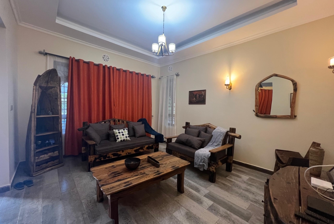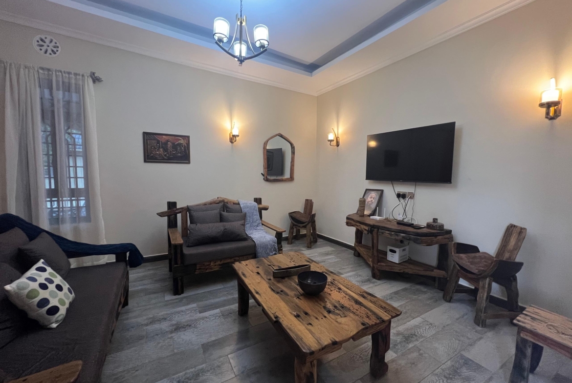 Experience peaceful and comfortable living in this beautifully furnished home located in the calm and secure Ngarasero area of Usa River. Designed with warmth and character, the home blends modern comfort with artistic wood finishes, creating a serene atmosphere perfect for families or professionals.