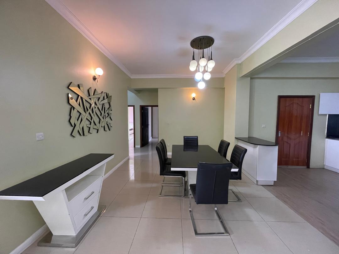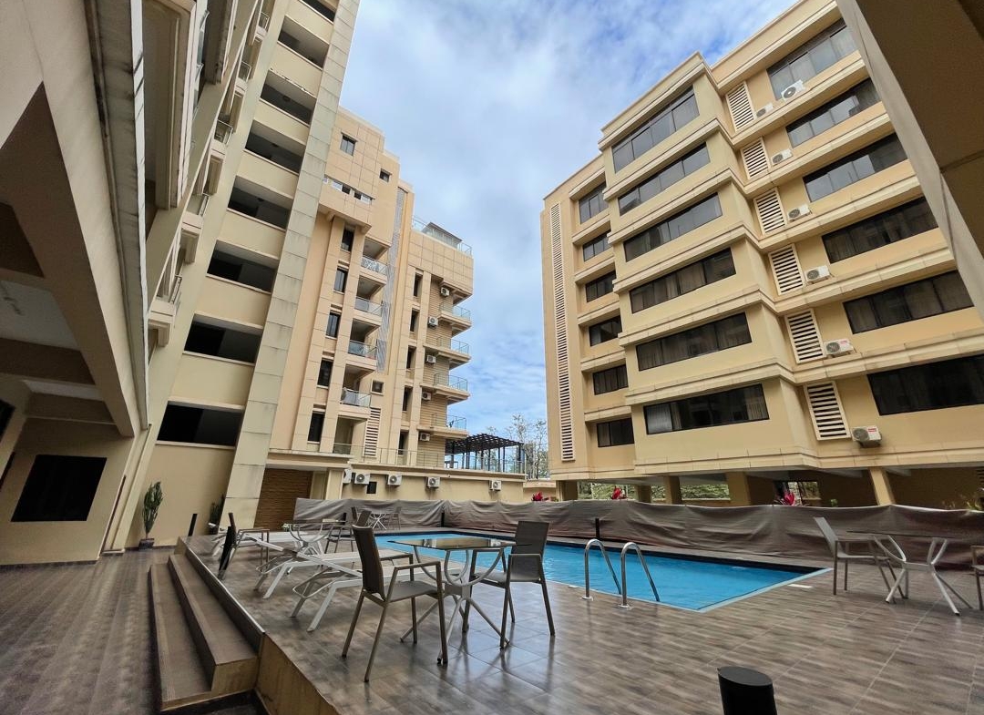 The apartment features three well-designed bedrooms, including two master bedrooms, and a total of 2.5 bathrooms. Each room has its own private balcony, allowing plenty of natural light and fresh air throughout. The spacious living and dining area creates a welcoming environment, complemented by a modern open-plan kitchen designed for both practicality and style. Fully air-conditioned rooms ensure year-round comfort, making it an ideal home for families, diplomats, or professionals.