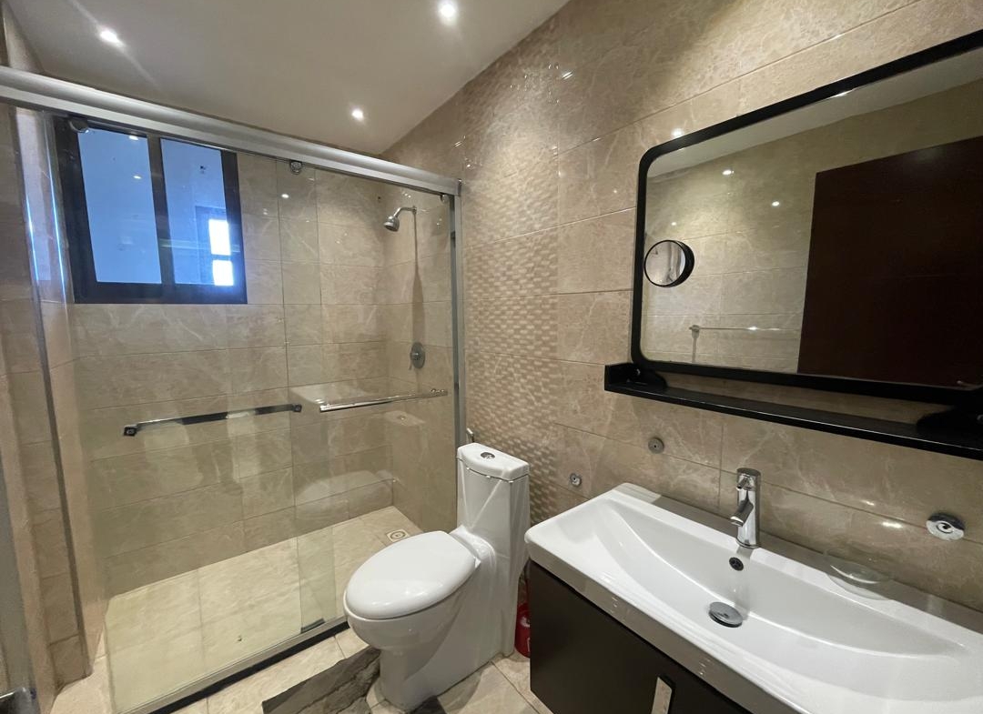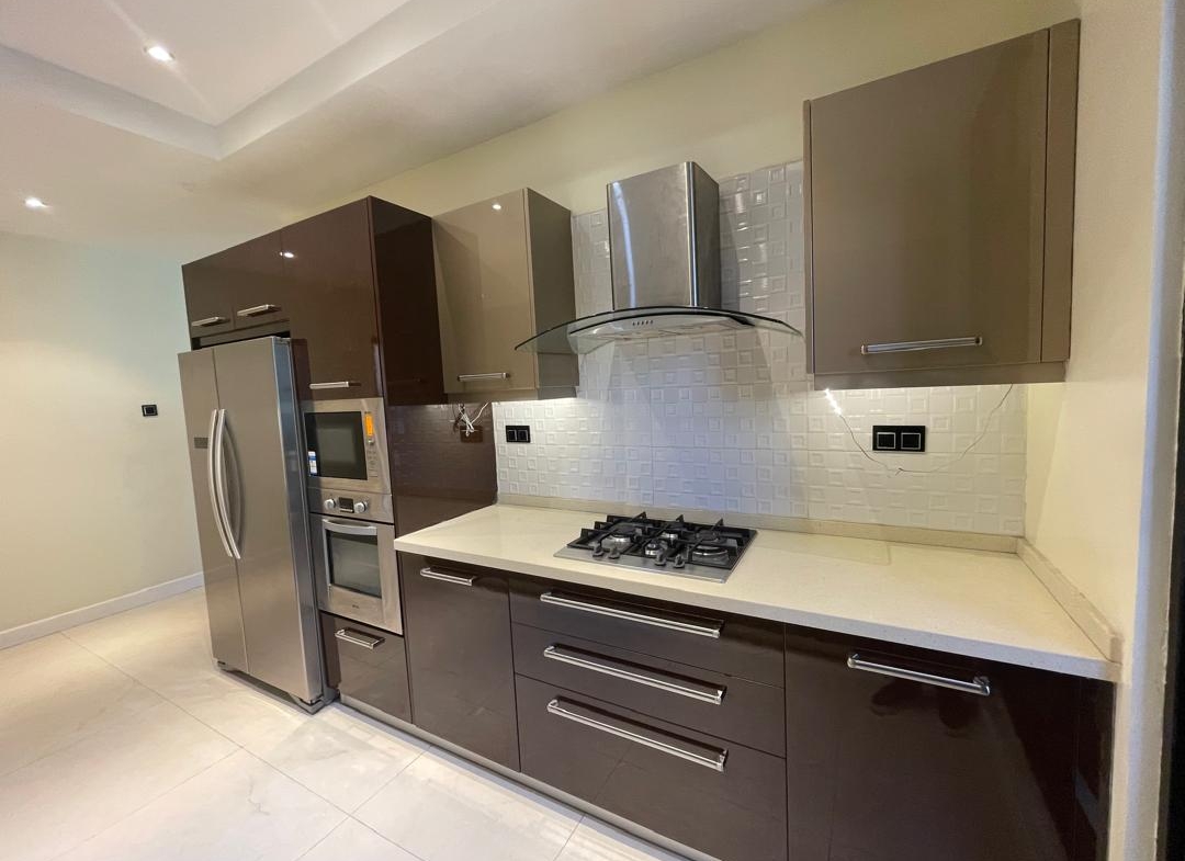 The apartment features two spacious bedrooms, including a master ensuite, complemented by two modern bathrooms with sleek finishes. The closed kitchen comes fully fitted with cabinets and modern appliances, seamlessly connecting to a bright living and dining area that opens to a balcony overlooking the tranquil neighborhood. Residents also enjoy access to top-tier amenities, including a swimming pool, a fully equipped gym, an elevator, ample parking, a backup generator, and 24/7 security within a beautifully maintained compound.