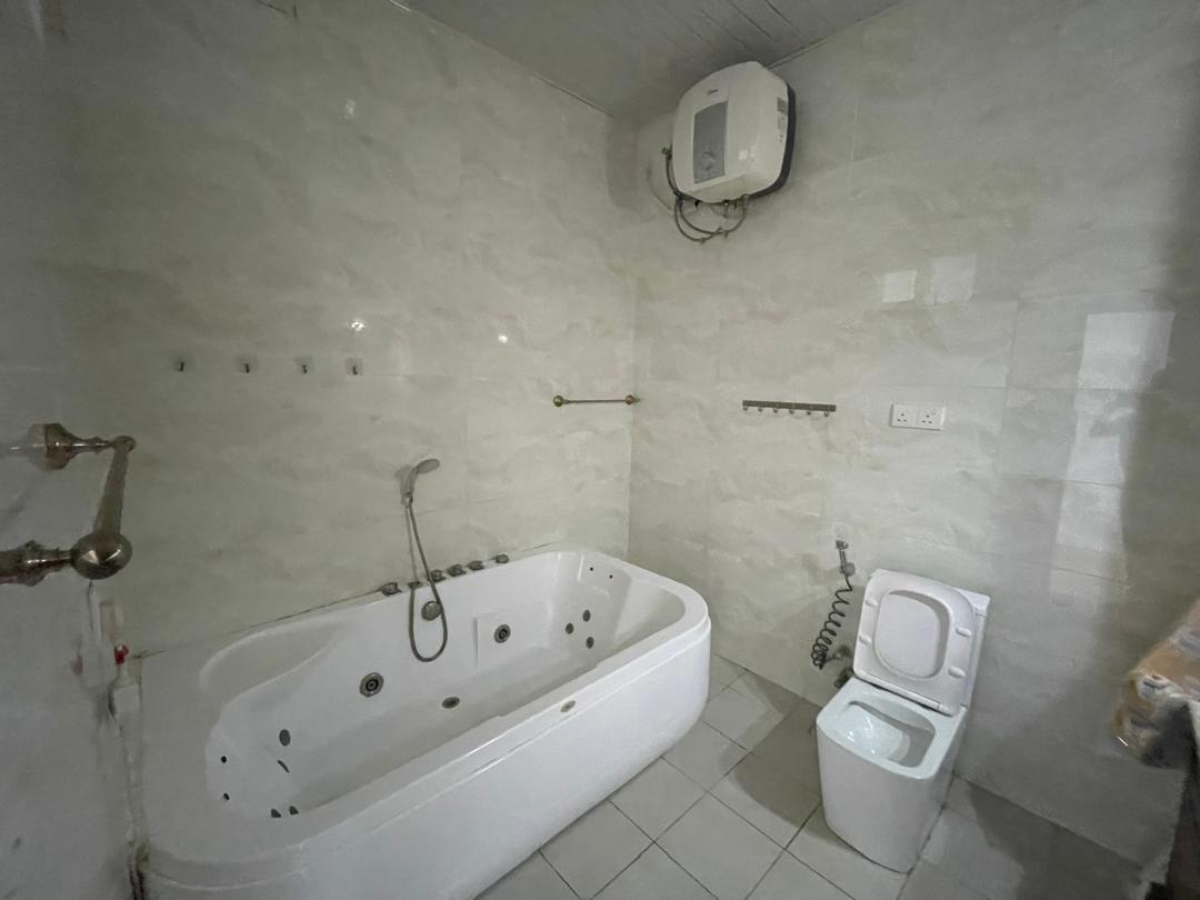 The apartment features four spacious bedrooms—two master ensuites and two standard rooms—all equipped with built-in wardrobes that blend practicality with charm. The bathrooms are tastefully fitted, with a bathtub offering a relaxing retreat after a long day. The open-plan kitchen comes with modern fittings, a refrigerator, and a microwave, creating a sleek and efficient cooking space. A dedicated laundry area with a washing machine and ironing space ensures convenience, while the living room stands out with its beautiful wall paintings and generous natural light streaming through balconies on both sides, allowing for perfect cross ventilation.