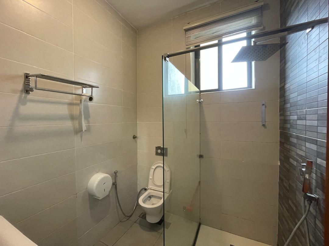 The apartment is available in both 1-bedroom and 2-bedroom options. The 2-bedroom unit features both bedrooms as ensuite with an additional public toilet, while the 1-bedroom unit offers a spacious ensuite layout. Inside, you’ll find a modern closed kitchen equipped with a refrigerator, washing machine, and stylish black-and-white cabinets. The living area is bright and airy, leading to a private balcony with relaxing views. Bedrooms include inbuilt wardrobes and window coverings, ensuring privacy and comfort.