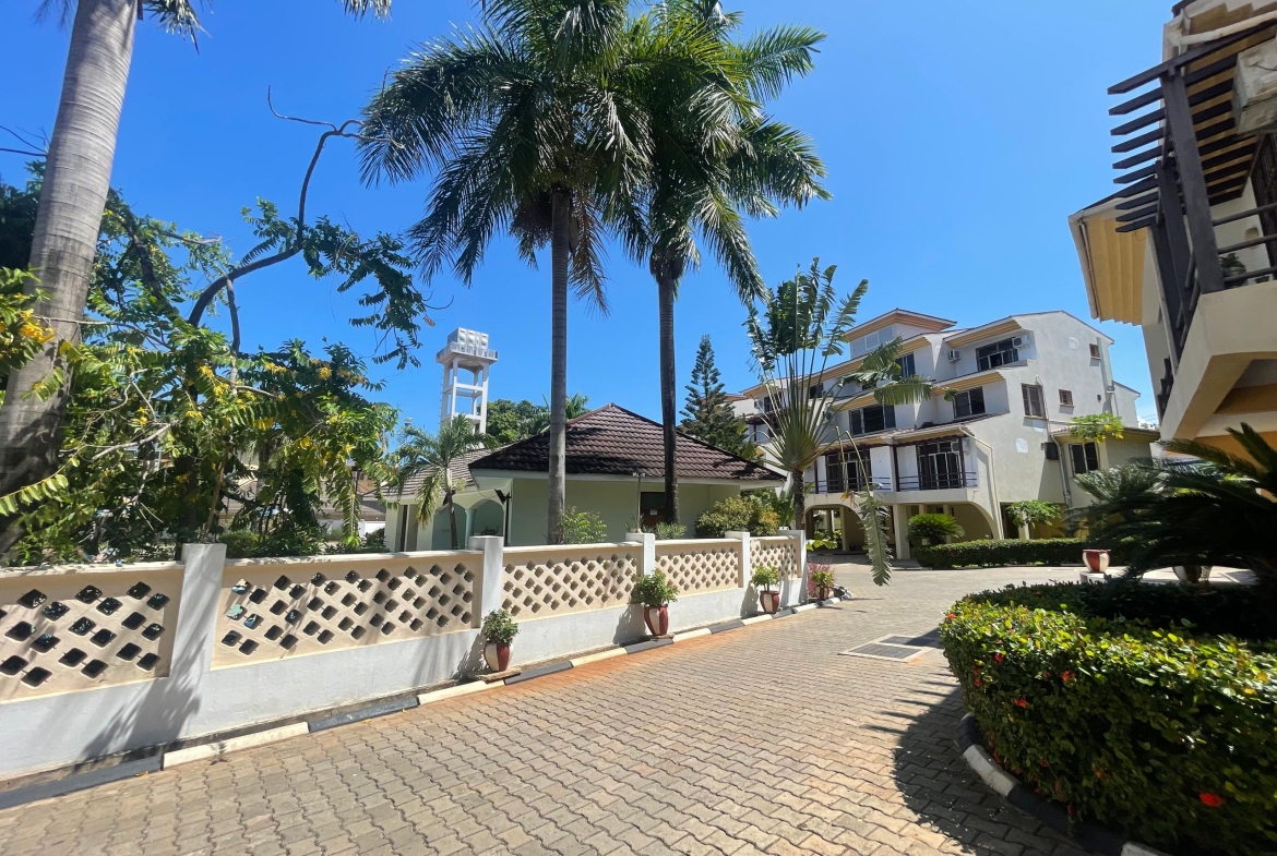 The location is both convenient and calm — just five metres from the road and tarmac, with Leaders Club, cafés, shops and everyday services close by. The compound is secured by a concrete wall and fence, with paved grounds, a neat garden, reliable municipal water, and resident access to gym and swimming facilities; it’s a little pocket of comfort within Kinondoni’s lively rhythm.