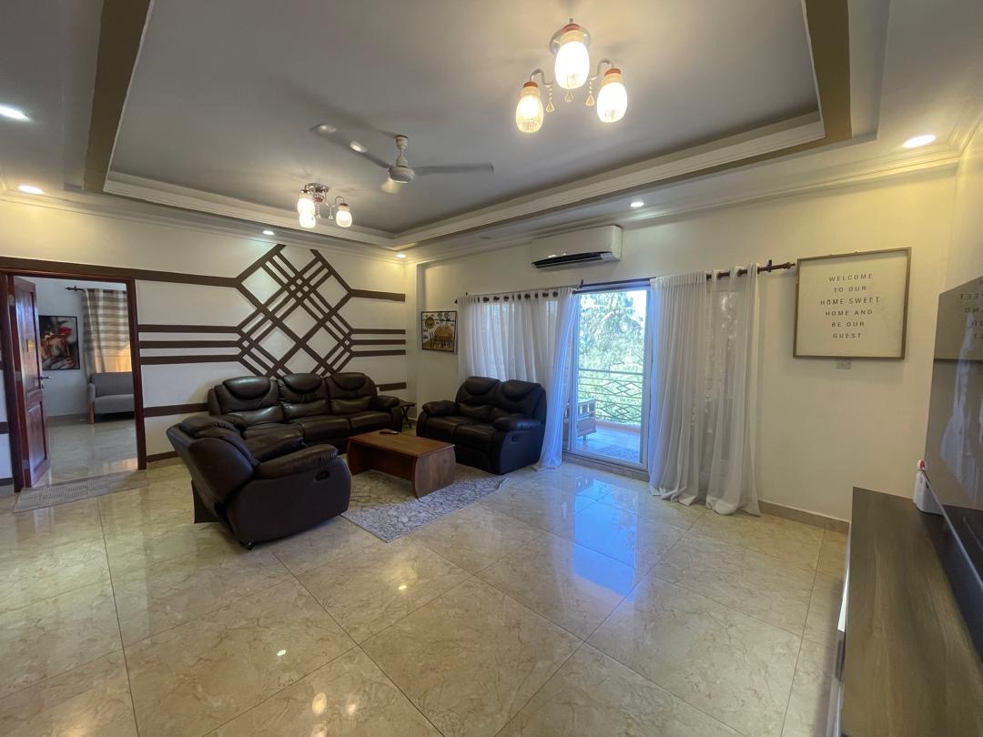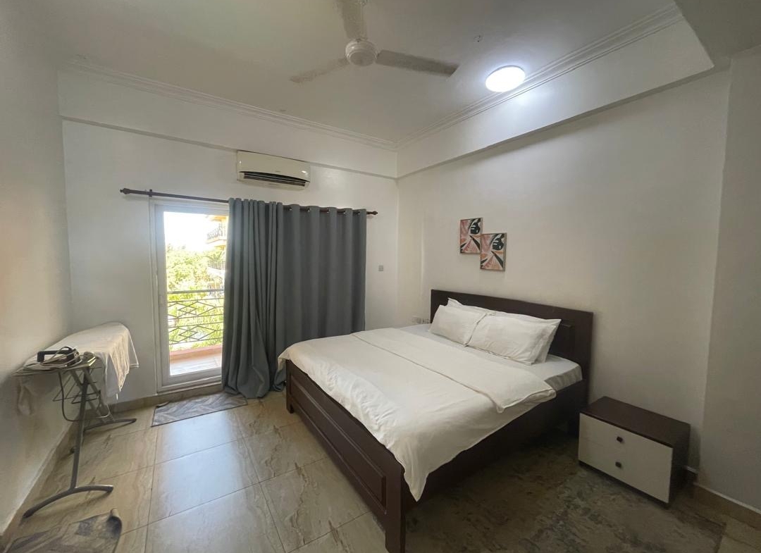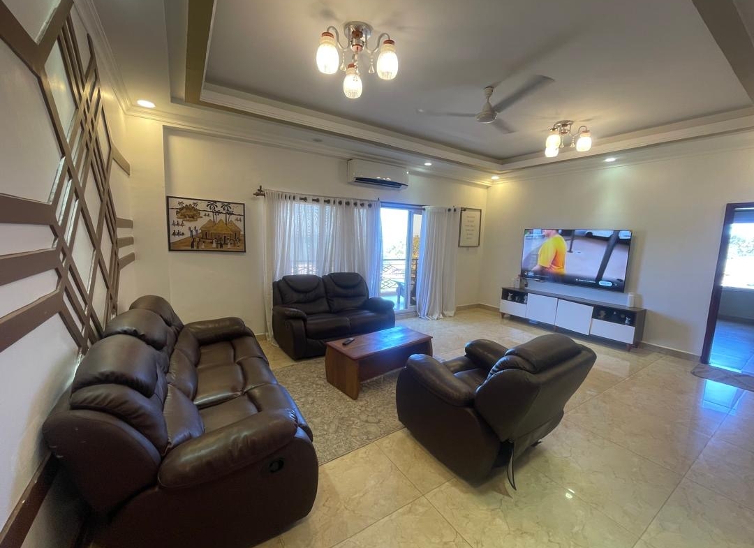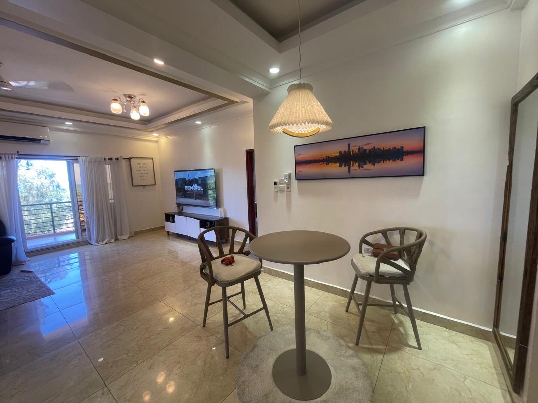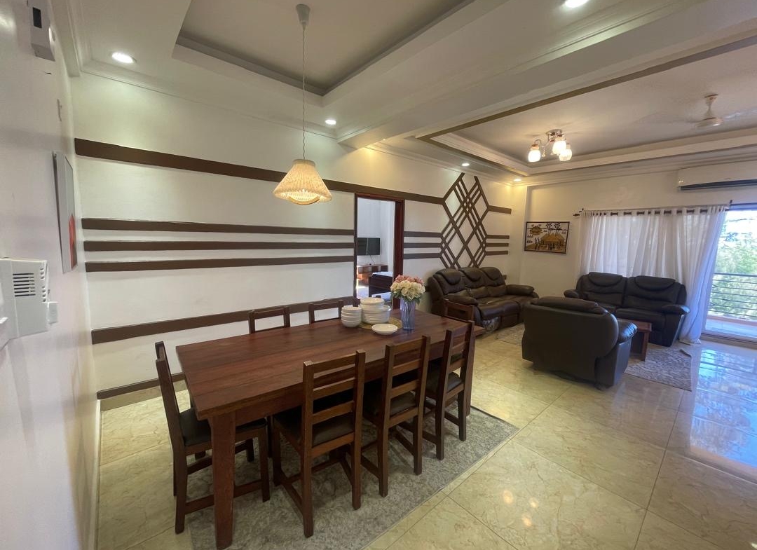 The apartment features 3 spacious ensuite bedrooms, each thoughtfully designed for privacy and comfort. Inside, you’ll find a beautifully furnished living and dining area with stylish lighting, wall art, and a cozy setup ideal for unwinding or hosting friends. The kitchen is fully equipped with high-end fittings, a refrigerator, microwave, and ample storage, while one of the bedrooms includes a dedicated space for ironing. Wall tiles in the bathrooms contrast beautifully, adding a subtle touch of sophistication. A private balcony opens to a scenic sea view — the perfect spot to relax or share moments with loved ones.